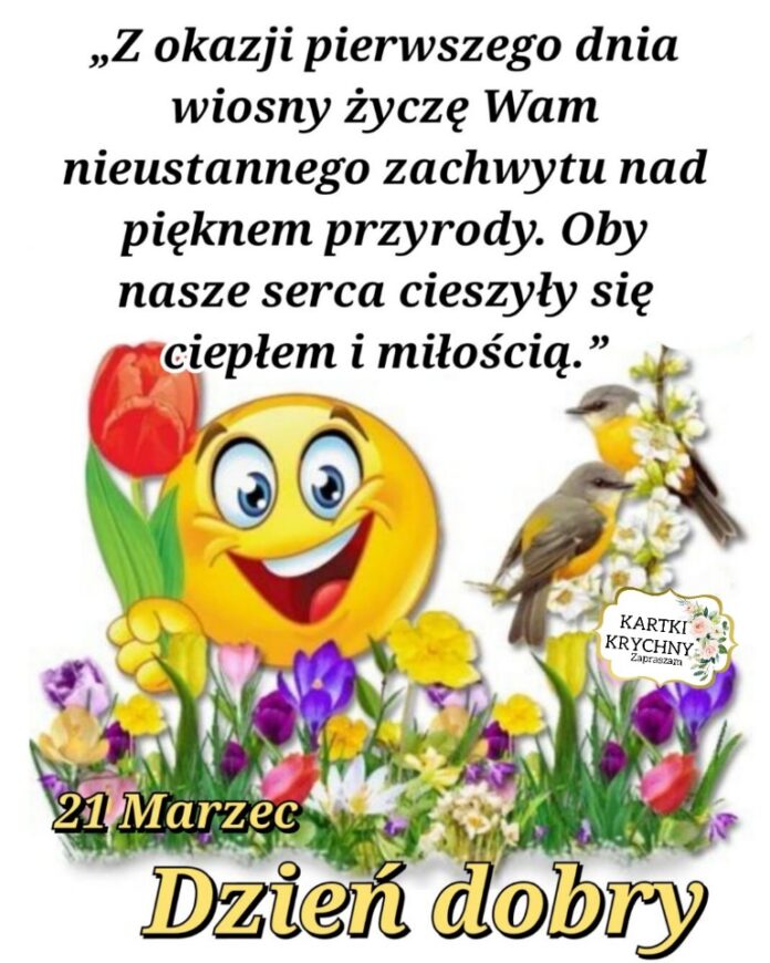 Strona głównaPierwszy dzień wiosnyDzień dobry w pierwszy dzień Wiosny - karteczki Dzień dobry w pierwszy dzień Wiosny – karteczki FacebookTwitterPinterestWhatsApp WIĘCEJ KARTEK PONIŻEJ Pierwszy dzień wiosny Dzień dobry w pierwszy Dzień Wiosny. Udanej soboty życzę. Radosnej, pięknej Wiosny – Twojekarteczki.pl Bogusława Palion - 21 marca, 2026 Więcej Pierwszy dzień wiosny Dzień dobry w pierwszy wiosenny poranek. Pięknej soboty życzę – Twojekarteczki.pl Bogusława Palion - 20 marca, 2026 Więcej Załaduj więcej Pierwszy dzień wiosny Dzień dobry w pierwszy dzień Wiosny 21 Marca. Piękne kartki na dzień dobry – Twojekarteczki.pl Bogusława Palion - 20 marca, 2026 Więcej Pierwszy dzień wiosny Radosnego dnia w Pierwszy Dzień Wiosny – Twojekarteczki.pl Bogusława Palion - 20 marca, 2026 Więcej Załaduj więcej Pierwszy dzień wiosny Pierwszy Dzień Wiosny. Życzę Ci pięknego dnia – Twojekarteczki.pl Bogusława Palion - 20 marca, 2026 Więcej Pierwszy dzień wiosny Dzień dobry w pierwszy dzień Wiosny Bogusława Palion - 20 marca, 2026 Więcej Załaduj więcej Pierwszy dzień wiosny Dzień dobry w pierwszy dzień Wiosny 21 Marca. Piękne kartki na dzień dobry – Twojekarteczki.pl Bogusława Palion - 20 marca, 2026 Więcej Pierwszy dzień wiosny Kartki z życzeniami na pierwszy Dzień Wiosny Bogusława Palion - 20 marca, 2026 Więcej Załaduj więcej NAJNOWSZE Życzenia Urodzinowe Życzę Ci dużo miłości, zdrowia i tego, co najbardziej chcesz. Wszystkiego najpiękniejszego z okazji urodzin! – kartki okolicznościowe Bogusława Palion - 21 kwietnia, 2026 Więcej Wtorek Życzenia na wtorek rano. Dzień dobry – kartki na dzień dobry Bogusława Palion - 21 kwietnia, 2026 Więcej Wtorek Życzenia na Wtorek rano. Radosnego pięknego wiosennego dnia Ci życzę – kartki na dzień dobry Bogusława Palion - 20 kwietnia, 2026 Więcej Wtorek Miłego dnia we wtorek o poranku Bogusława Palion - 20 kwietnia, 2026 Więcej Wtorek Dzień dobry we wtorek Bogusława Palion - 20 kwietnia, 2026 Więcej Załaduj więcej