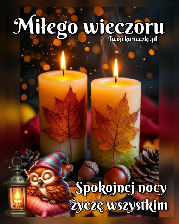 Strona głównaNa dobranocKarteczki na miły wieczór dla Ciebie Karteczki na miły wieczór dla Ciebie FacebookTwitterPinterestWhatsApp WIĘCEJ KARTEK PONIŻEJ Na dobranoc Dobrej nocy życzę Bogusława Palion - 16 kwietnia, 2026 Więcej Na dobranoc Miłego wieczoru. Dobranoc Bogusława Palion - 16 kwietnia, 2026 Więcej Załaduj więcej Na dobranoc Miłego wieczoru i spokojniej nocy Bogusława Palion - 16 kwietnia, 2026 Więcej Na dobranoc Karteczki na miły wieczór dla Ciebie Bogusława Palion - 7 kwietnia, 2026 Więcej Załaduj więcej Na dobranoc Dobrej nocy życzę wszystkim Bogusława Palion - 7 kwietnia, 2026 Więcej Na dobranoc Miłego wieczoru i spokojniej nocy życzę Bogusława Palion - 7 kwietnia, 2026 Więcej Załaduj więcej Na dobranoc Miłego wieczoru i spokojniej nocy Bogusława Palion - 30 marca, 2026 Więcej Na dobranoc Miłego wieczoru i spokojniej nocy życzę – kartki na dobranoc dla Ciebie Bogusława Palion - 27 marca, 2026 Więcej Załaduj więcej NAJNOWSZE Imieniny Piękne życzenia na imieniny – kartki okolicznościowe Bogusława Palion - 20 kwietnia, 2026 Więcej Poniedziałek Mimo niepogody życzę Ci pięknego dnia. Dzień dobry w poniedziałek Bogusława Palion - 20 kwietnia, 2026 Więcej Poniedziałek Dzień dobry w deszczowy poniedziałek Bogusława Palion - 20 kwietnia, 2026 Więcej Poniedziałek Dzień dobry w deszczowy poniedziałek. Życzę udanego nowego tygodnia – piękne kartki na dzień dobry Bogusława Palion - 20 kwietnia, 2026 Więcej Poniedziałek Miłego poniedziałku życzę wszystkim Bogusława Palion - 19 kwietnia, 2026 Więcej Załaduj więcej